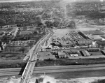 Valle's Restaurant and Charterhouse Motor Hotel (1150 Brighton Avenue) in foreground. Pine Tree Shopping Center at right. Sagamore Village at left.